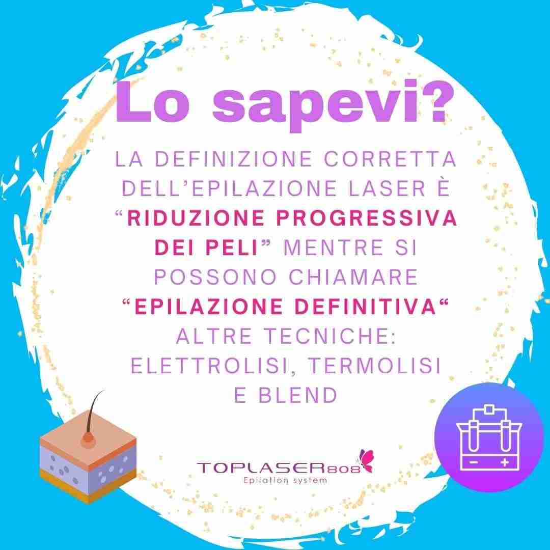 La definizione corretta dell’epilazione laser è “riduzione progressiva dei peli”, mentre è un errore chiamarla “rimozione PERMANENTE o DEFINITIVA”, poiché si farebbe una promozione del trattamento ingannevole, e quindi sanzionabile da parte delle autorità.