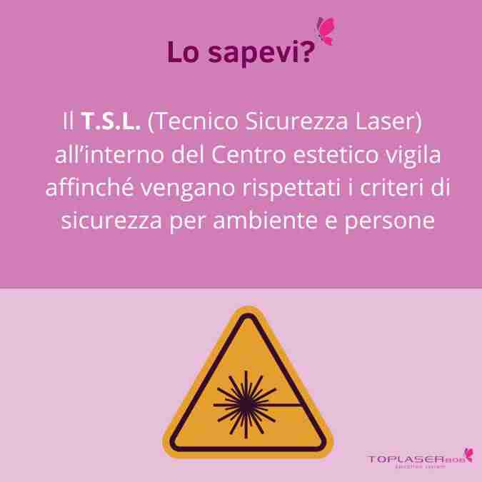 Il T.S.L. (Tecnico Sicurezza Laser) è la figura, nominata dal titolare, che all’interno del Centro estetico vigila affinché vengano rispettati i criteri di sicurezza per ambiente e persone, ed è una persona sola.